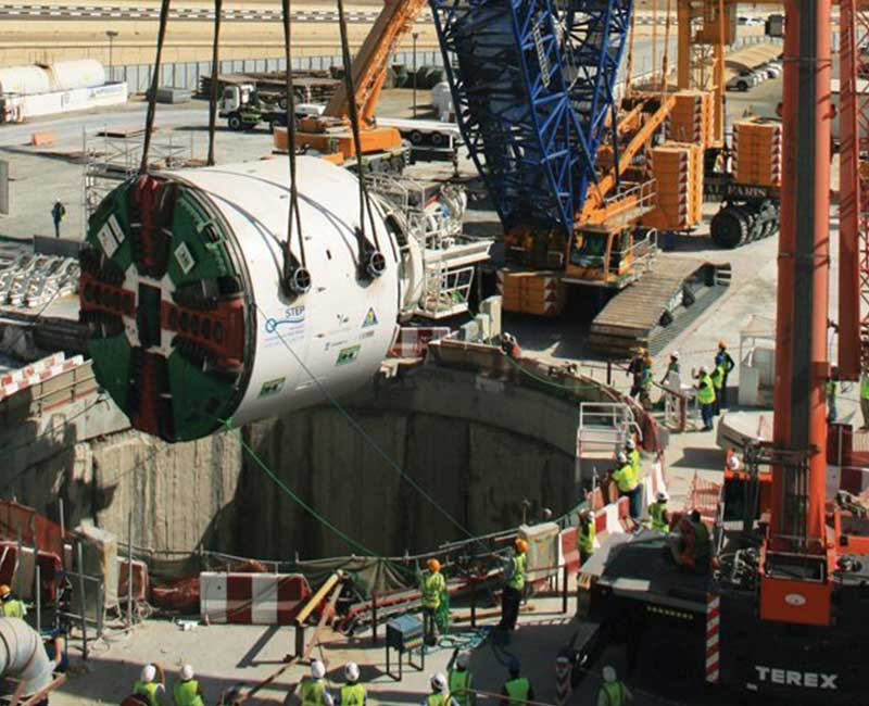 An extended sewage line system with a sewer tunnel and several supply tunnels for transporting the sewage to treatment plants. Laying out of the lines necessitated experience as well as dedication to complete this task requiring heavy labour in time.